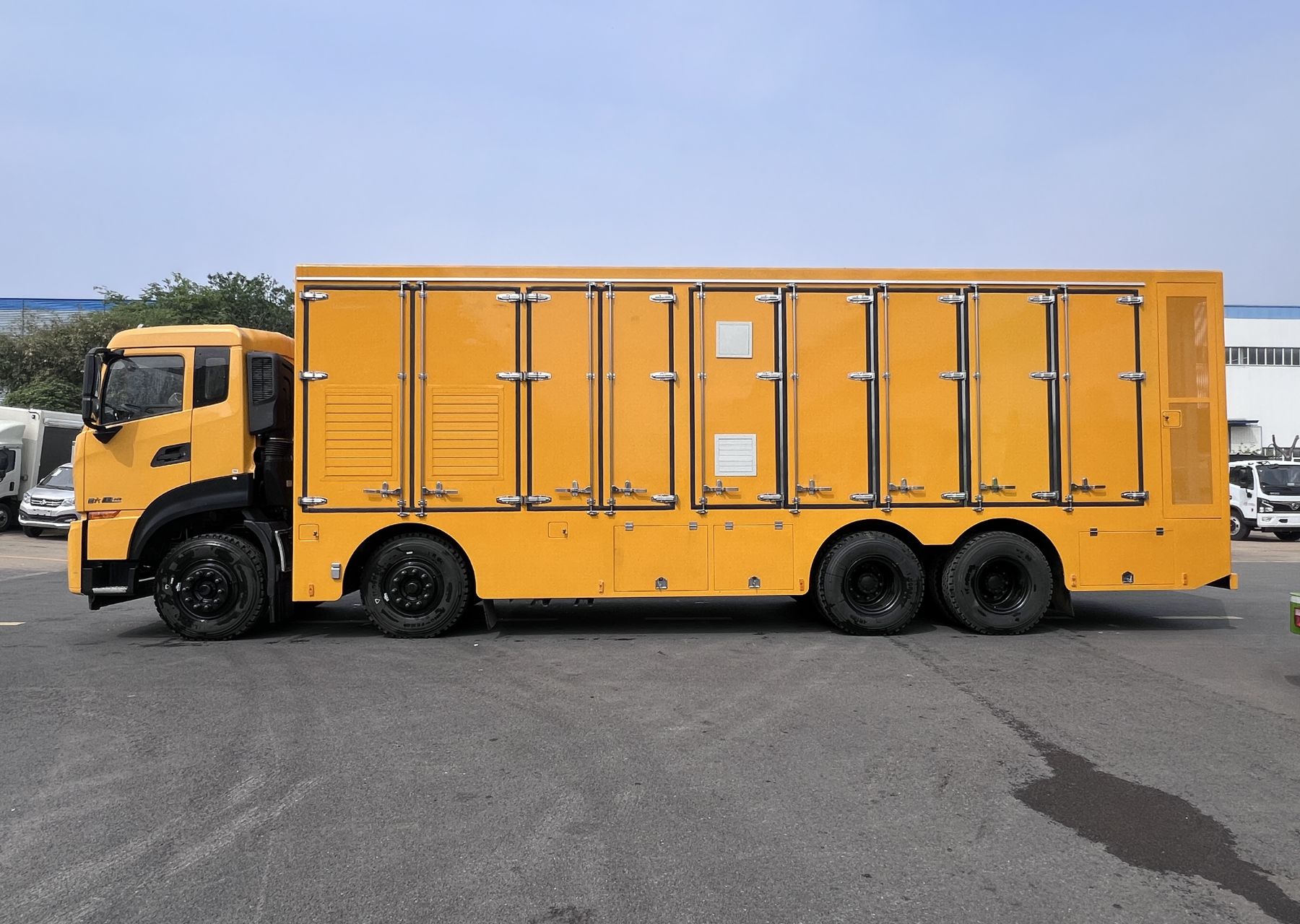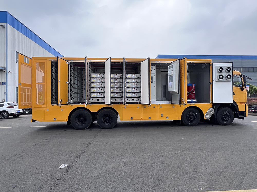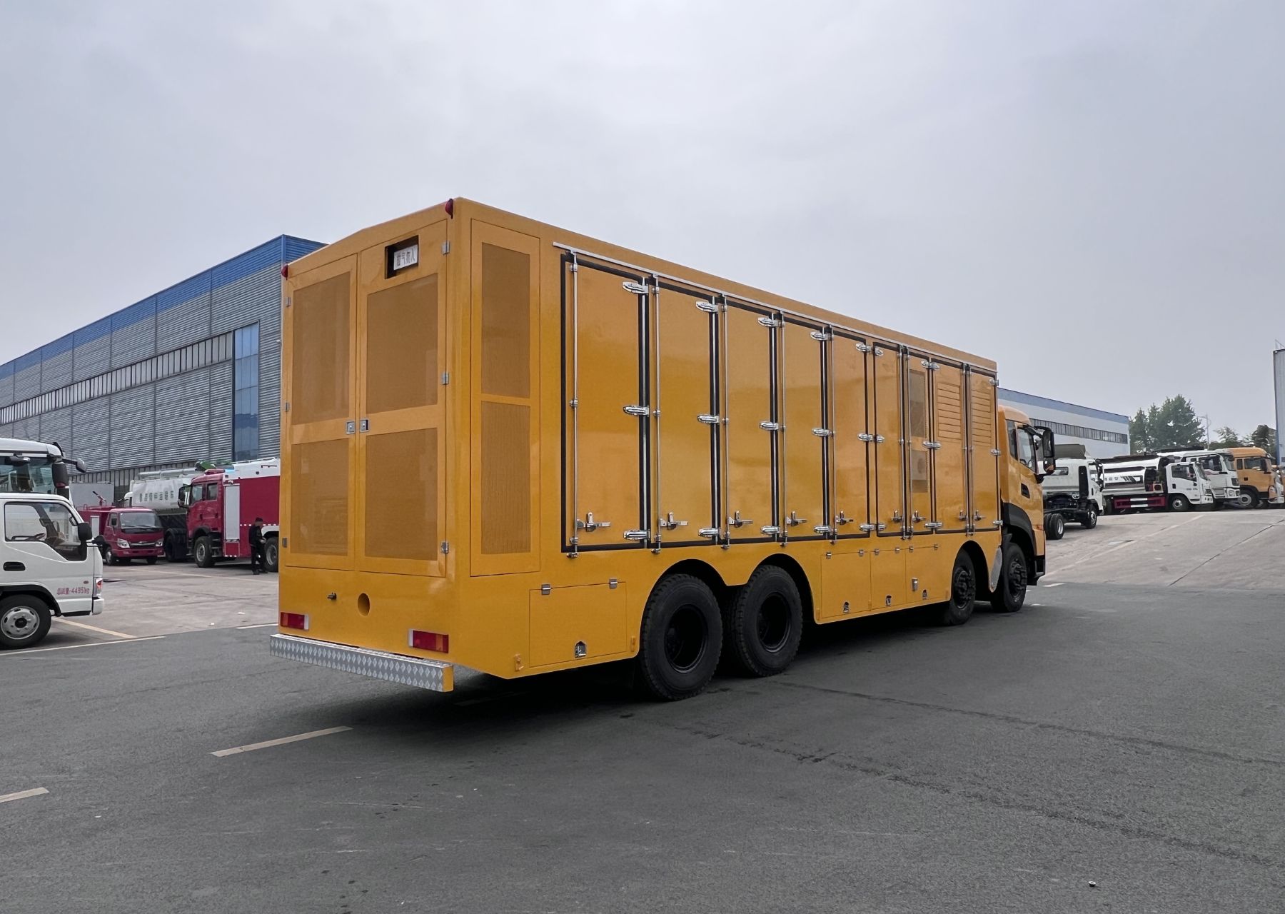 - 儲(chǔ)能電源車采用性能良好的東風(fēng)品牌,型號(hào)為:DFH1310A9,美觀大方;具備夜間工作能力;