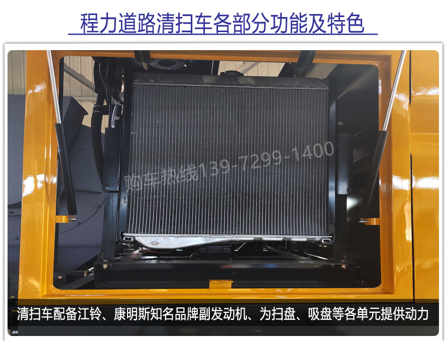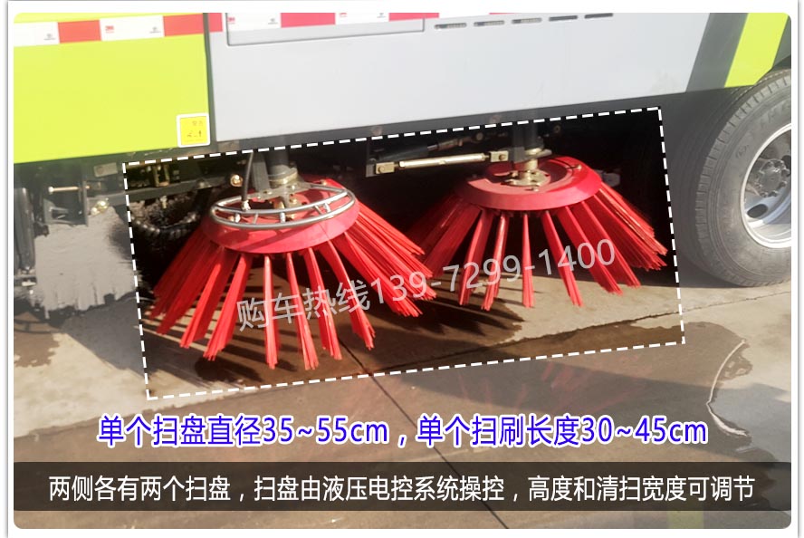 二、上裝配置: 標(biāo)配掃盤4把;掃盤轉(zhuǎn)速實(shí)現(xiàn)獨(dú)立3檔調(diào)速;大力馬達(dá);施耐德控件開關(guān);臺(tái)灣液壓閥;皖液液壓油泵;新西山水泵;免維護(hù)自分離式離合器;免維護(hù)風(fēng)機(jī);不銹鋼水箱;不銹鋼垃圾箱;尾部LED箭頭燈;手動(dòng)泵應(yīng)急系統(tǒng);前掃刷臂轉(zhuǎn)動(dòng)機(jī)構(gòu)使用高新耐磨工程隔套,免打黃油;精密冷彎無(wú)縫液壓油管。
