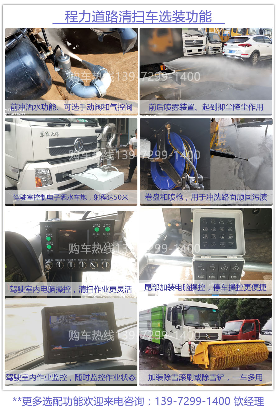 三、選裝配置: 選裝倒車和左右掃影像;選配前沖后灑、杭州威龍灑水泵,前置綠化炮、前后噴霧;選裝自潔帶卷盤;副水箱加大;手持吸塵管;低水位報(bào)警系統(tǒng)。3308以上車型可加裝除雪滾和雪鏟。