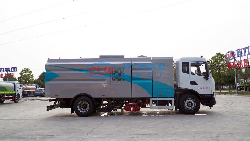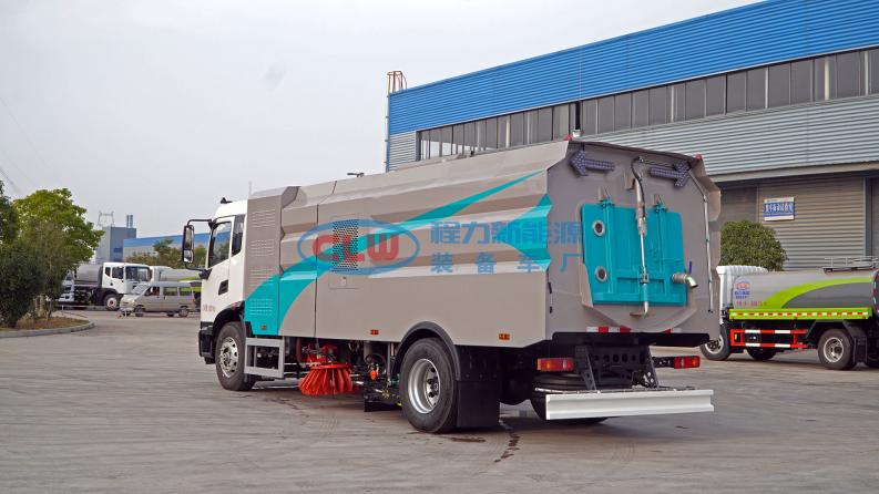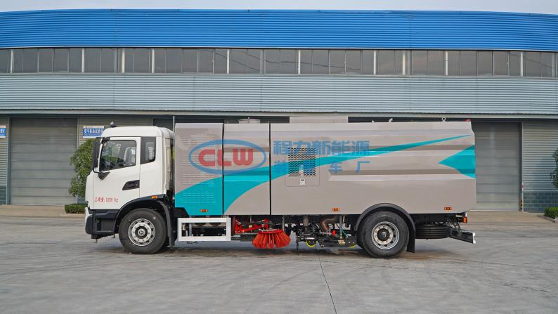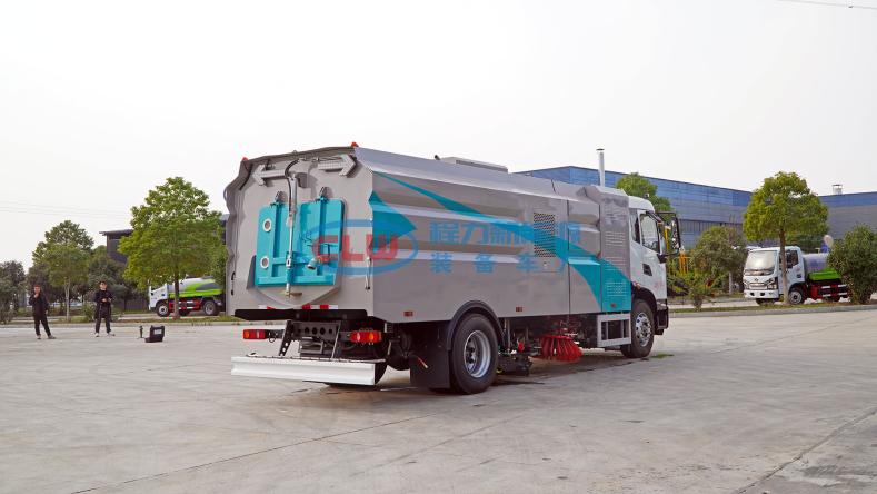 12、左右立掃為單掃盤,減少了掃刷的數量和掃刷消耗量,能降低使用成本。掃刷上加裝噴水裝置,用于噴霧降塵。左右立掃分開控制,可實現右掃和全掃等不同的作業模式。