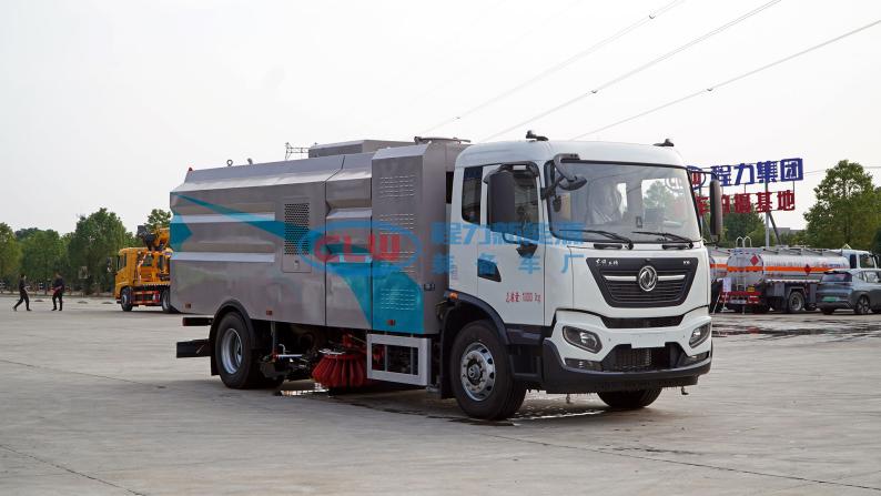 四、其他說明: 東風天錦純電動洗掃車是我公司自行設計開發、具有自主知識產權、國際領先技術水平的新一代路面、路沿清洗、清掃及噴霧降塵的專用設備。該款洗掃車結合了掃路車及高壓清洗車的功能特點,并解決了吸塵車無法在城市道路上清洗路沿的短板,在作業時利用掃刷將地面垃圾掃向車內側,路面的頑固附著物由高壓噴水桿噴出的水流沖起,再由吸盤吸入垃圾箱儲存.具有綠色環保、功能齊全、設計合理、能耗低、清洗范圍廣、使用壽命長等特點。