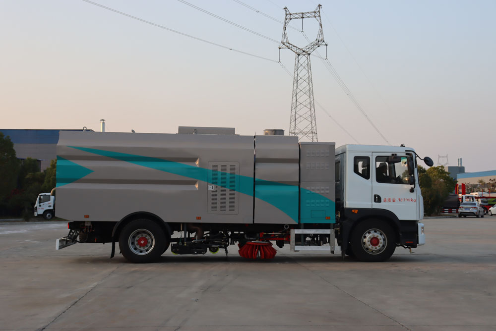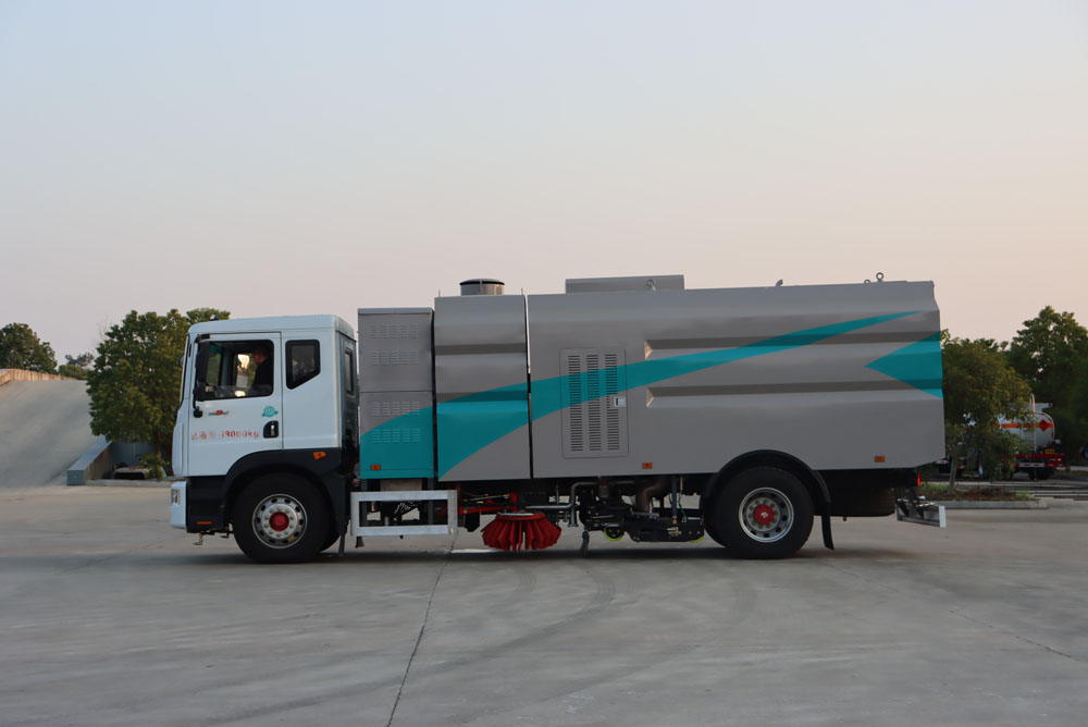 四、其他說明: 東風(fēng)凱普特純電動(dòng)洗掃車是我公司研制開發(fā)的集掃路車和高壓清洗車功能于一體 的高效環(huán)衛(wèi)車。整車動(dòng)力強(qiáng)勁,結(jié)構(gòu)先進(jìn),掃、吸、洗相結(jié)合,作業(yè)效果好。一次作業(yè),三重 收獲,道路清掃、路面高壓清洗、垃圾污水收集一次完成,此洗掃功能解決了不可視垃圾清理 的作業(yè)難題,從源頭上遏制道路揚(yáng)塵,還原路面本色。