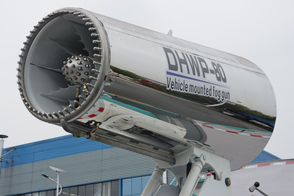 4、工作效率高、噴霧速度快;對(duì)容易引起塵埃的堆場噴水除塵時(shí),噴出的霧粒細(xì)小與飄起的塵埃接觸時(shí),形成一種潮濕霧狀體,能快速將塵埃抑制降沉,霧量沉降率可達(dá)95%。