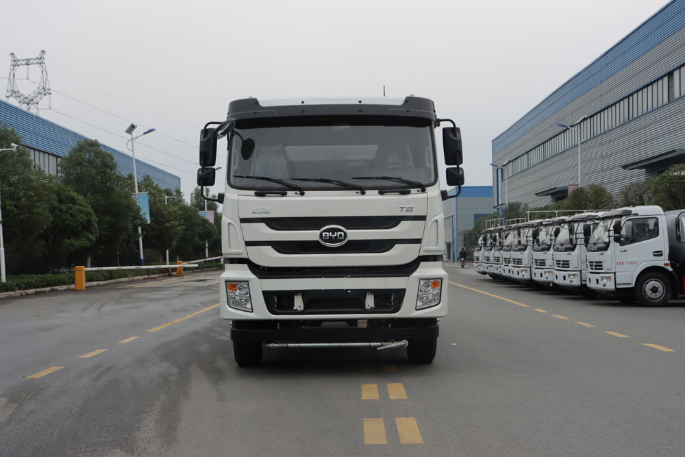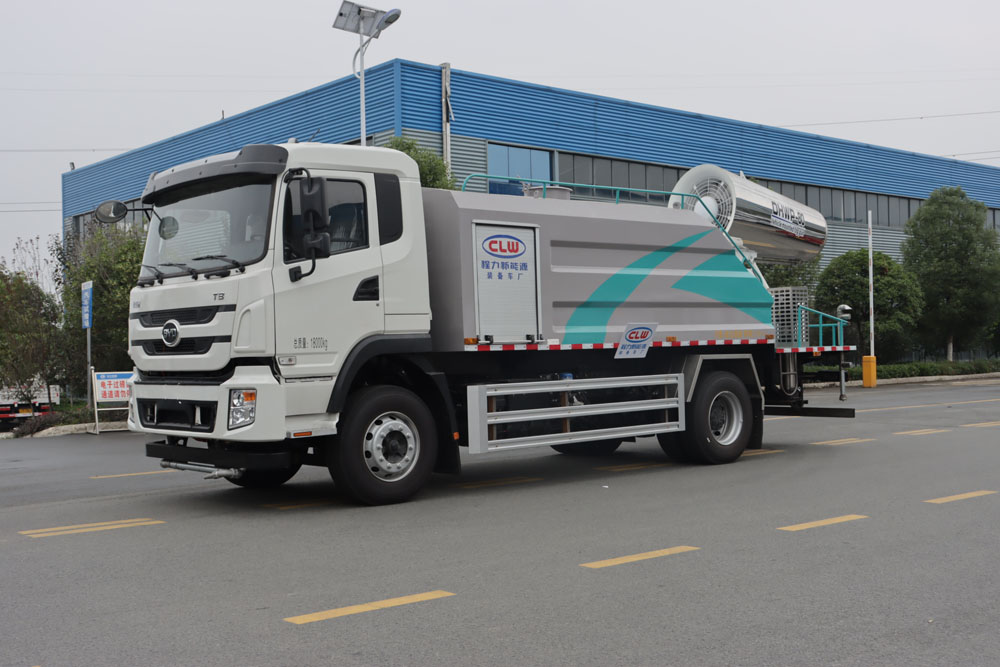 四、其他說明: 比亞迪T8純電動(dòng)多功能抑塵車是在純電動(dòng)二類底盤的基礎(chǔ)上,加裝低壓沖洗、灑水系統(tǒng)、霧炮機(jī)組,由機(jī)械、液壓(氣路)、電器三部分合為一體的專用灑水作業(yè)車。 采用自吸式雙級(jí)離心泵,效率高、灑水寬度大、水槍射程遠(yuǎn),低壓水泵由底盤變速器取力器通過傳動(dòng)軸直接傳動(dòng)。霧炮機(jī)組由底盤電池帶動(dòng)霧炮風(fēng)扇電機(jī)、不銹鋼多級(jí)離心泵,進(jìn)行噴霧降塵工作。