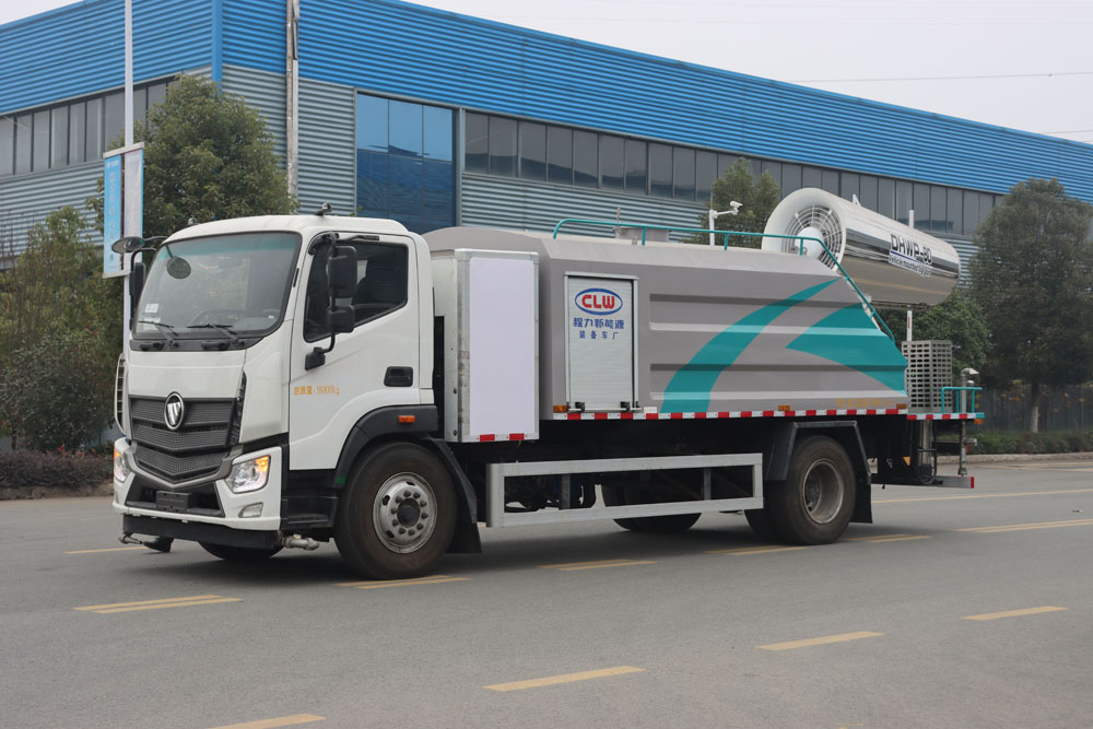 四、其他說明: 福田純電動多功能抑塵車是在純電動二類底盤的基礎(chǔ)上,加裝低壓沖洗、灑水系統(tǒng)、霧炮機組,由機械、液壓(氣路)、電器三部分合為一體的專用灑水作業(yè)車。 采用自吸式雙級離心泵,效率高、灑水寬度大、水槍射程遠,低壓水泵由底盤變速器取力器通過傳動軸直接傳動。霧炮機組由底盤電池帶動霧炮風扇電機、不銹鋼多級離心泵,進行噴霧降塵工作。