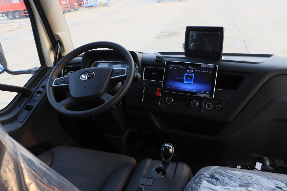 一、底盤配置: 采用解放 CA1180P62L3BEV車身,配置玉柴TZ370XS-LKM1101發動機160/218馬力,國六排放標準,軸距 5600,5300(mm),整備質量11.95噸,額定載質量5.855噸,五擋變速箱,帶動力轉向,帶原廠空調,該車上黃牌,城區道路請注意限行標識。