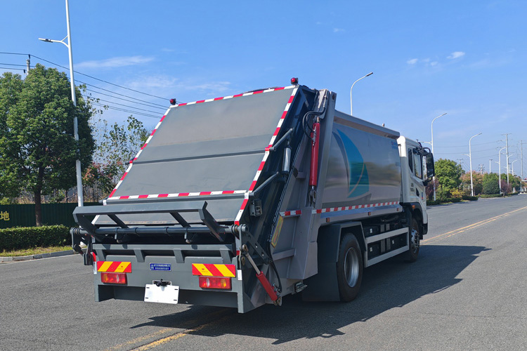 - 作業自動化:采用光電開關加時間雙系統控制,帶一鍵卸料,帶無線遙控裝置,全部填裝排卸作業中只需司機一人操作,可設定全自動和半自動 2 種操作模式,不僅減輕環衛工人的勞動強度, 而且大大改善了工作環境。