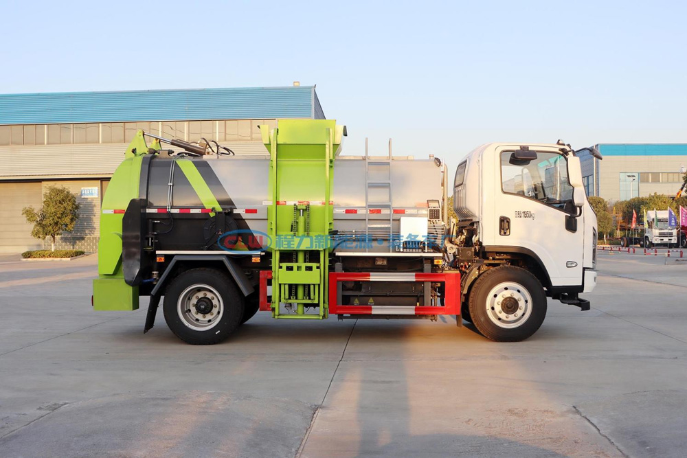 該車特點 由于餐廚垃圾車上裝結構復雜,自質量較大,降低餐廚垃圾車自質量,提高其載荷 利用率,將降低車輛運營成本。因此采用高強度材料,以降低上裝自質量;擋泥板、裝飾件、蓋 板等輔助件采用密度較小的注塑件,采用集成化程度較高的零部件,以減少空間占用和自質量, 同時有利于改善液壓系統的工作性能。專人試車;模擬各種復雜工作環境,所有壓縮發車前實物測試。