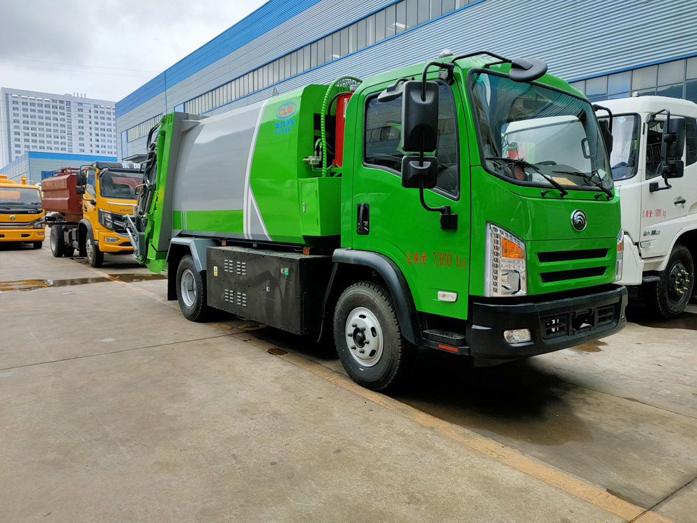 6. 方便的操作控制,作業(yè)控制盒分別安裝在駕駛室內(nèi)和車尾右側(cè),左側(cè)帶緊急停止按鈕,配備遙控器,駕駛室內(nèi)的作業(yè)控制盒可控制推擠卸料和選擇操作模式(如自動或手動),車尾的作業(yè)控制盒則控制壓填機(jī)構(gòu)和翻桶機(jī)構(gòu)的作業(yè),使用操作十分方便。特別是在垃圾填埋場,作業(yè)人員無須下車即可完成卸料和污水排放。