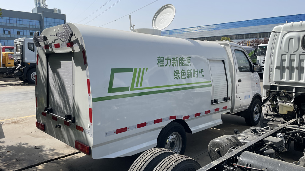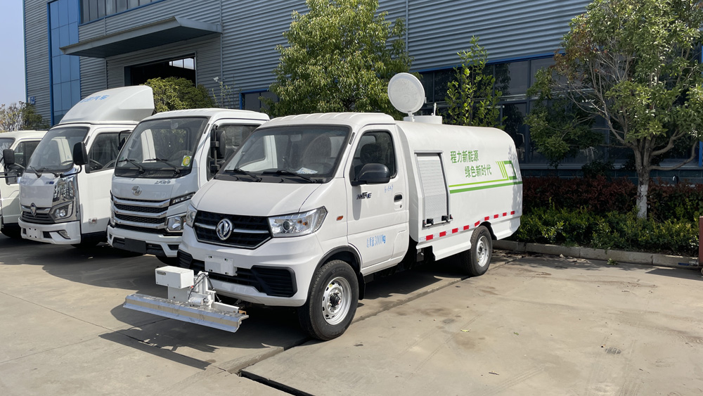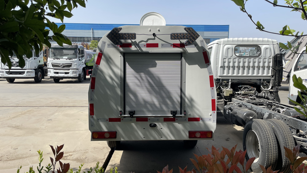 四、其他說明: 該車主要專用裝置為箱體、高壓清洗系統、前沖洗裝置,主要用于城市道路,非機動車道,人行道,護欄,路牙等的清洗養護作業,前噴淋裝置前伸350mm.