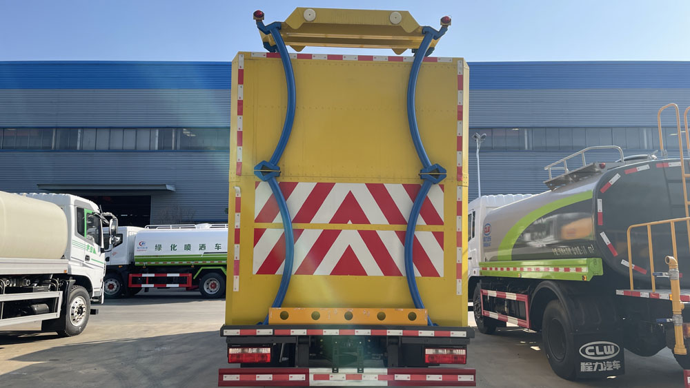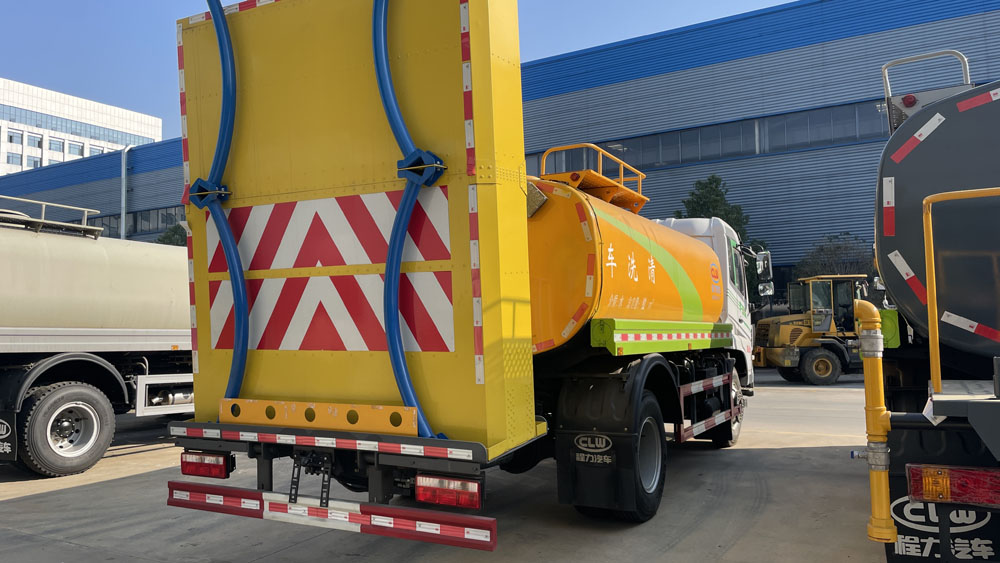 一、底盤配置: 采用東風福瑞卡 EQ1165S8EDF車身,配置玉柴D45TCIF1發動機162/220馬力,國六排放標準,軸距3600,3700(mm),整備質量6.79噸,額定載質量9.015噸,五擋變速箱,帶動力轉向,帶原廠空調,,僅采用軸距3700mm,前伸120mm和1310mm;該車主要用于城市護欄和高速路上護欄的清洗及園林噴灑。主要專用裝置為罐體,清洗裝置,防撞裝置。 2、罐體總容量:9.11立方米,有效容積:8.68立方米;罐體外形尺寸(長×寬×高)(mm):4000×2300×1450;運輸介質:水,密度:1000千克/立方米,該車上黃牌,城區道路請注意限行標識。