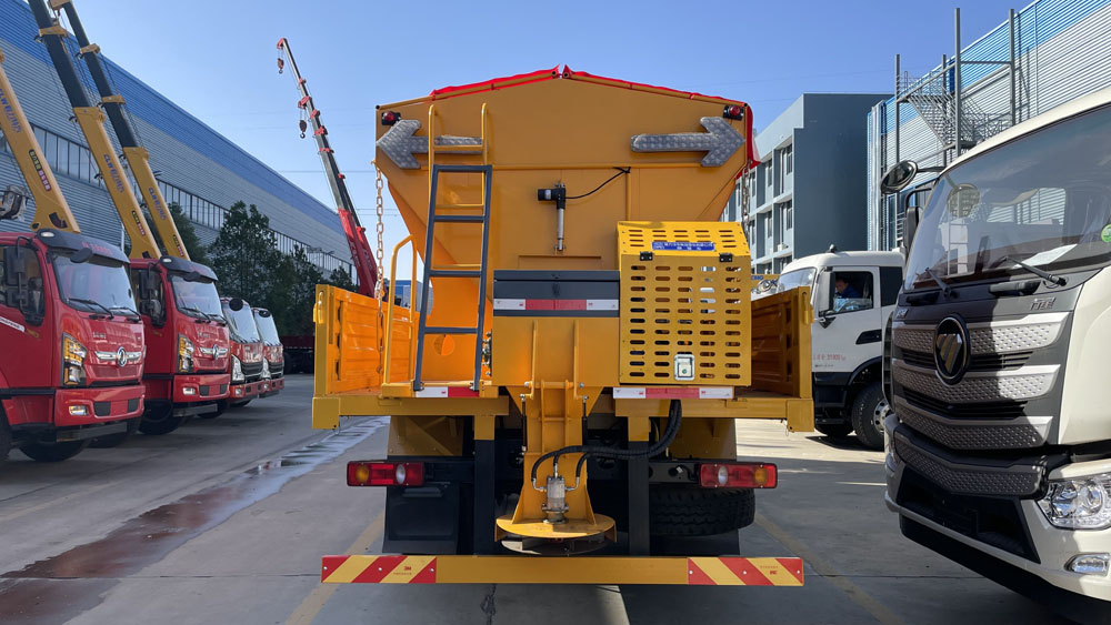 • 融雪撒布機可撒布鹽、砂、融雪劑等多種融雪物料,撒布寬度和撒布量可調節控制,計量穩定、準確、可靠,撒布寬度一般為 2-14m,撒布量為 20-300g/m² 可調 。撒布機采用碳鋼板或不銹鋼結構,具有良好的耐腐蝕性,動力組選用國內知名品牌發動機,性能穩定。其采用 V 型料倉,結構簡單可靠,使融雪劑自動落料,出料完全,無殘留,并且上置過濾網可減少大顆?;螂s物進入設備,保證機構安全運行,防滑輸送帶則保證了融雪劑輸送連續、均勻.
