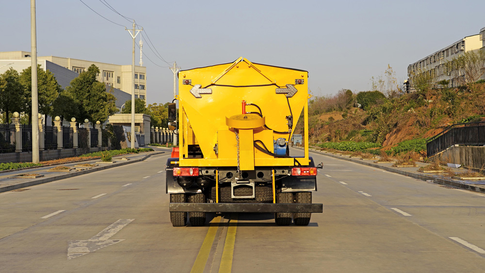 當(dāng)后防護(hù)截面尺寸(mm):120×60時連接方式為螺栓連接;離地高度400mm;專用功能及裝置:該車主要用于冬季道路除雪、破冰、撒布作業(yè),