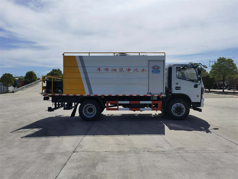 從而達到更加理想的灑布效果),尾部 14 個水泥漿專用噴頭,最大灑布寬度 4 米。標配水罐向攪拌罐供水系統,標
