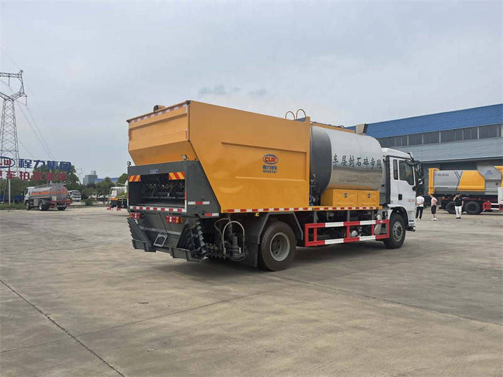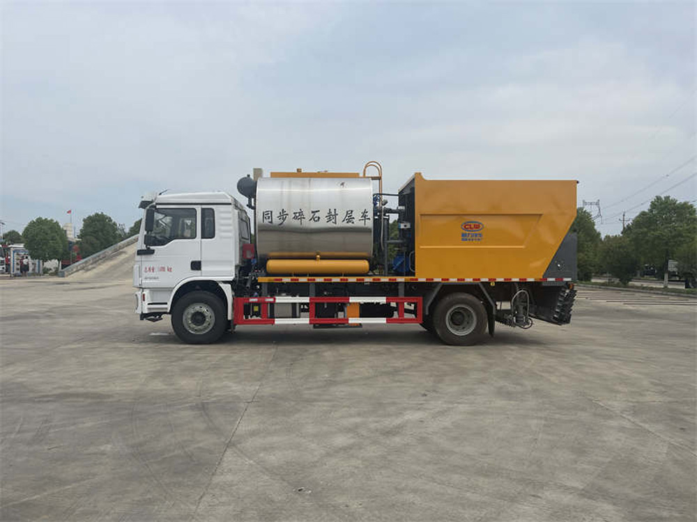 四、其他說明: 同步碎石封層是指利用同步碎石封層車將瀝青結(jié)合料的噴灑和石料的灑布同時進(jìn)行,使瀝青結(jié)合料與石料之間有最充分的接觸,以達(dá)到它們之間最大限度的粘結(jié)度。其更容易保證粘結(jié)劑和石料之間穩(wěn)定的比例關(guān)系,提高作業(yè)生產(chǎn)率,減少了機(jī)械配置,降低了施工成本。