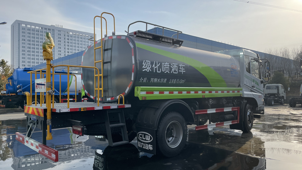 四、其他說明: 罐體由國標(biāo)5mm厚優(yōu)質(zhì)碳鋼板一次性卷壓成型,二保焊行走小車自動焊接,焊縫均勻、美觀,避免了人工焊接的漏焊和虛焊,罐體內(nèi)部加固處理,并設(shè)置防浪板,罐體內(nèi)外做防銹處理,標(biāo)配前沖、后灑、側(cè)噴、后置式工作平臺,平臺帶踏梯,四周有安全護(hù)欄,平臺上設(shè)有高壓水炮,可360°旋轉(zhuǎn),可調(diào)成:直沖狀、大雨、中雨、小雨、毛毛雨。