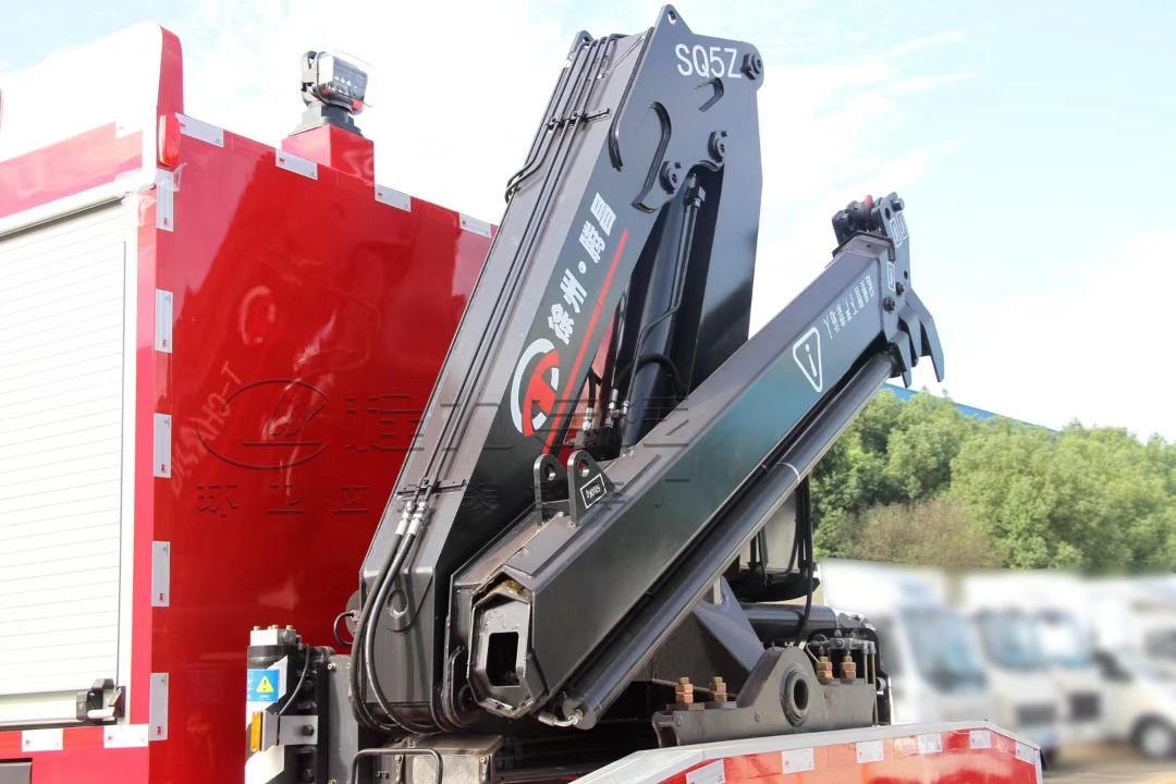 重汽豪沃搶險救援消防車,前拖后吊,具有起吊、自救/牽引、清障、發電、照明等功能,可裝備大量的破拆、偵檢、堵漏、防護等各類消防器材或工具;
